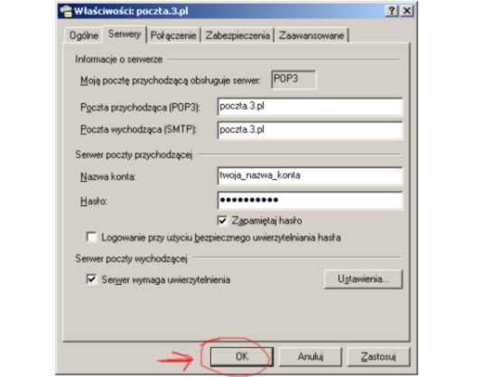 4.Zaznaczyć konto pocztowe (poczta.3.pl).
